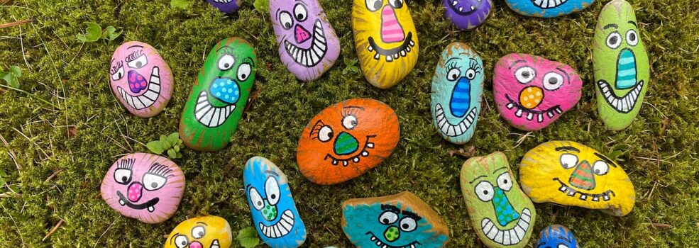 Dann kommt mit uns mit und wir bemalen gemeinsam Steine in den buntesten Farben.