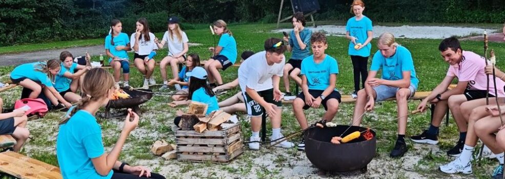 Programm: Ball- & Sportspiele, Paddel Tennis Tunier, Flagfootball, Bodenturnen, Schwimmtraining, Klettern im Waldseilgarten, Mountainbiken, Orientierungswanderung; Abschlussabend mit Lagerfeuer